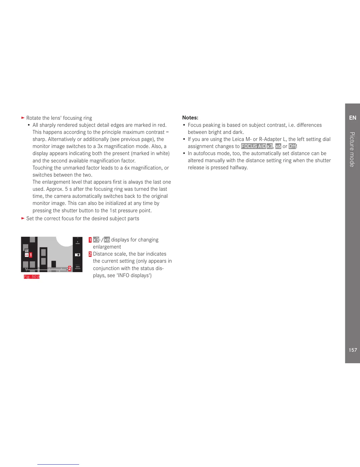 • In autofocus mode, too, the automatically set distance can be