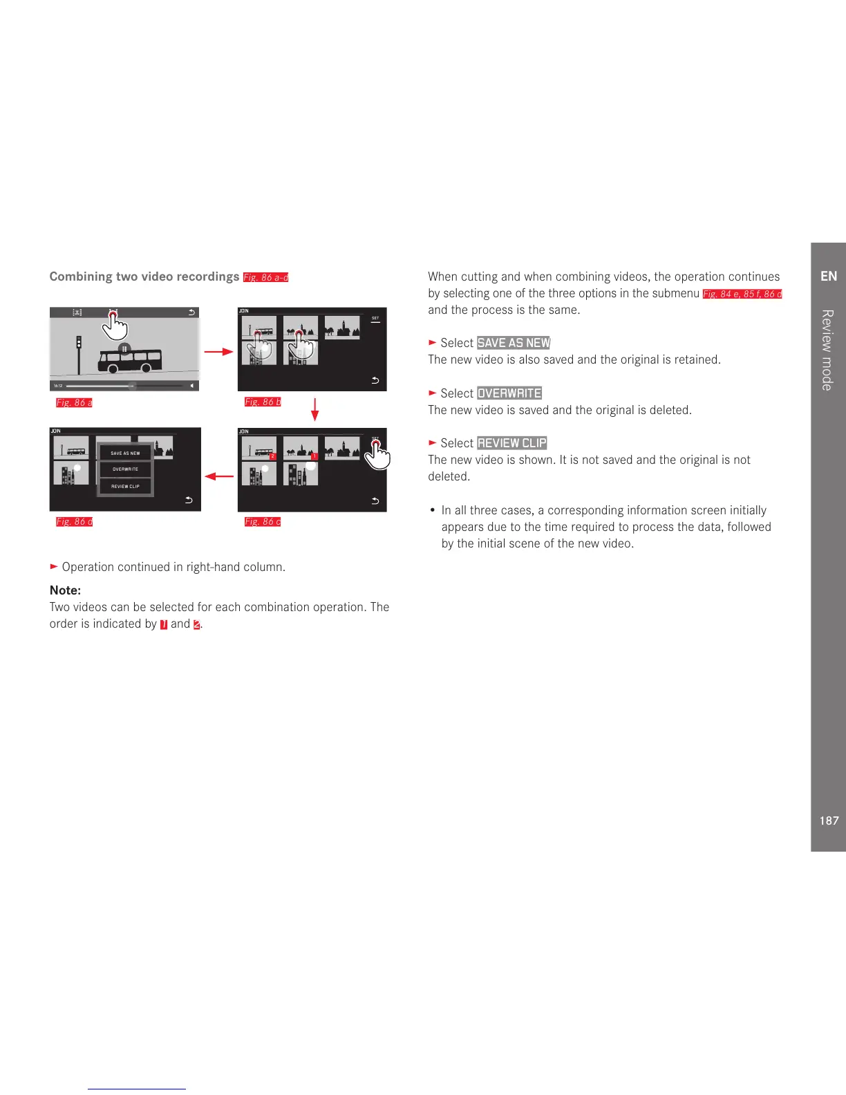 When cutting and when combining videos, the operation continues
