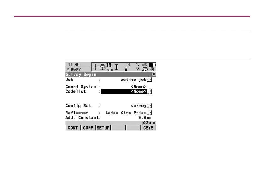 Press PROG. Highlight Survey. CONT (F1).