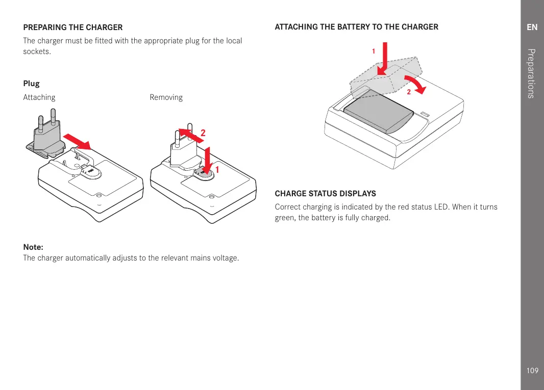 The charger automatically adjusts to the relevant mains voltage.