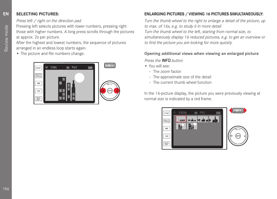 ENLARGING PICTURES / VIEWING 16 PICTURES SIMULTANEOUSLY: