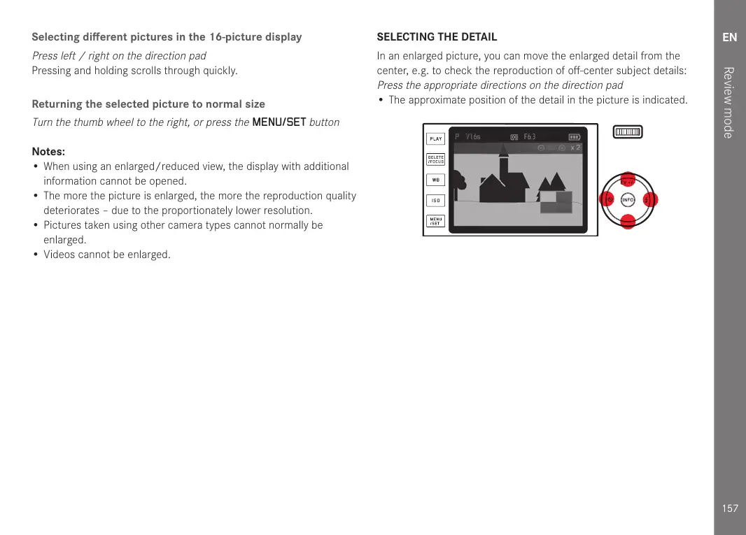 In an enlarged picture, you can move the enlarged detail from the