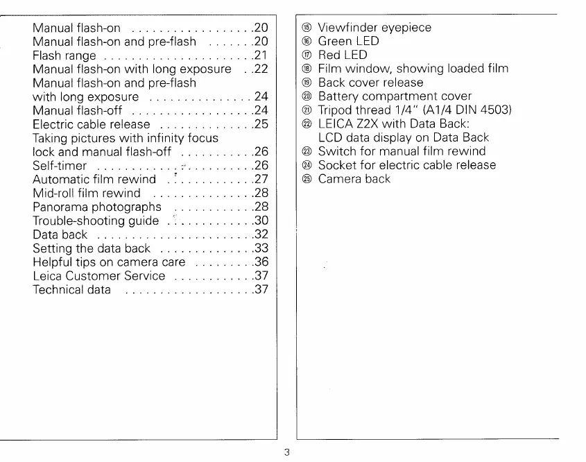 Leica Z2X - Table of Contents