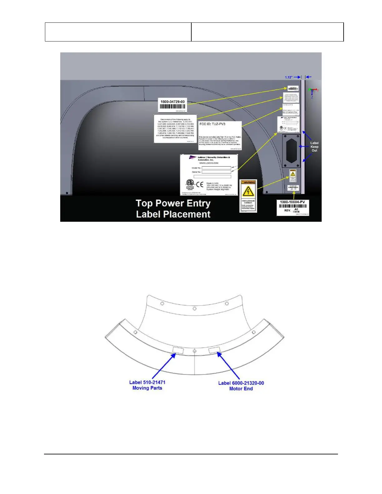 10. Add labels 6000-21320-00 and 510-21471 to the one entrance/exit panel that covers the motor