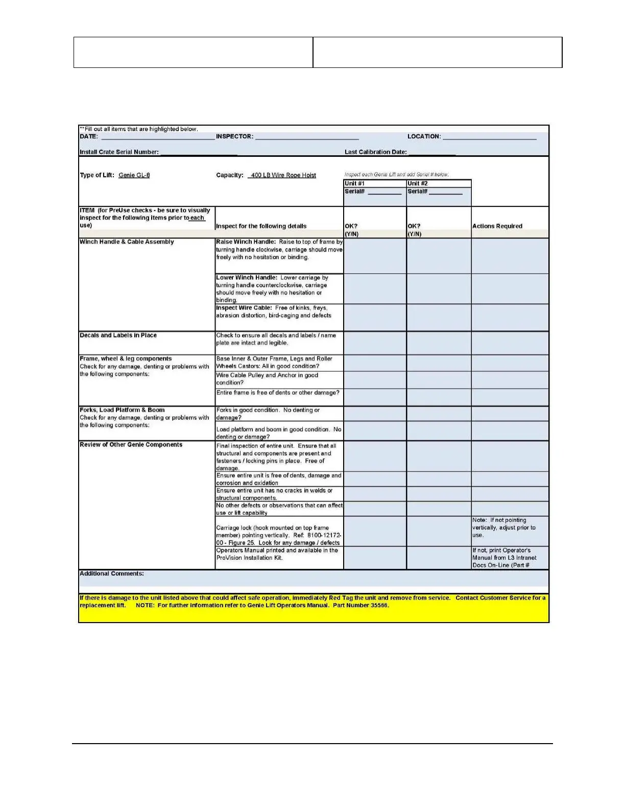 Leidos ProVision 3 - Appendix E: Genie Lift Pre-Use Inspection Form