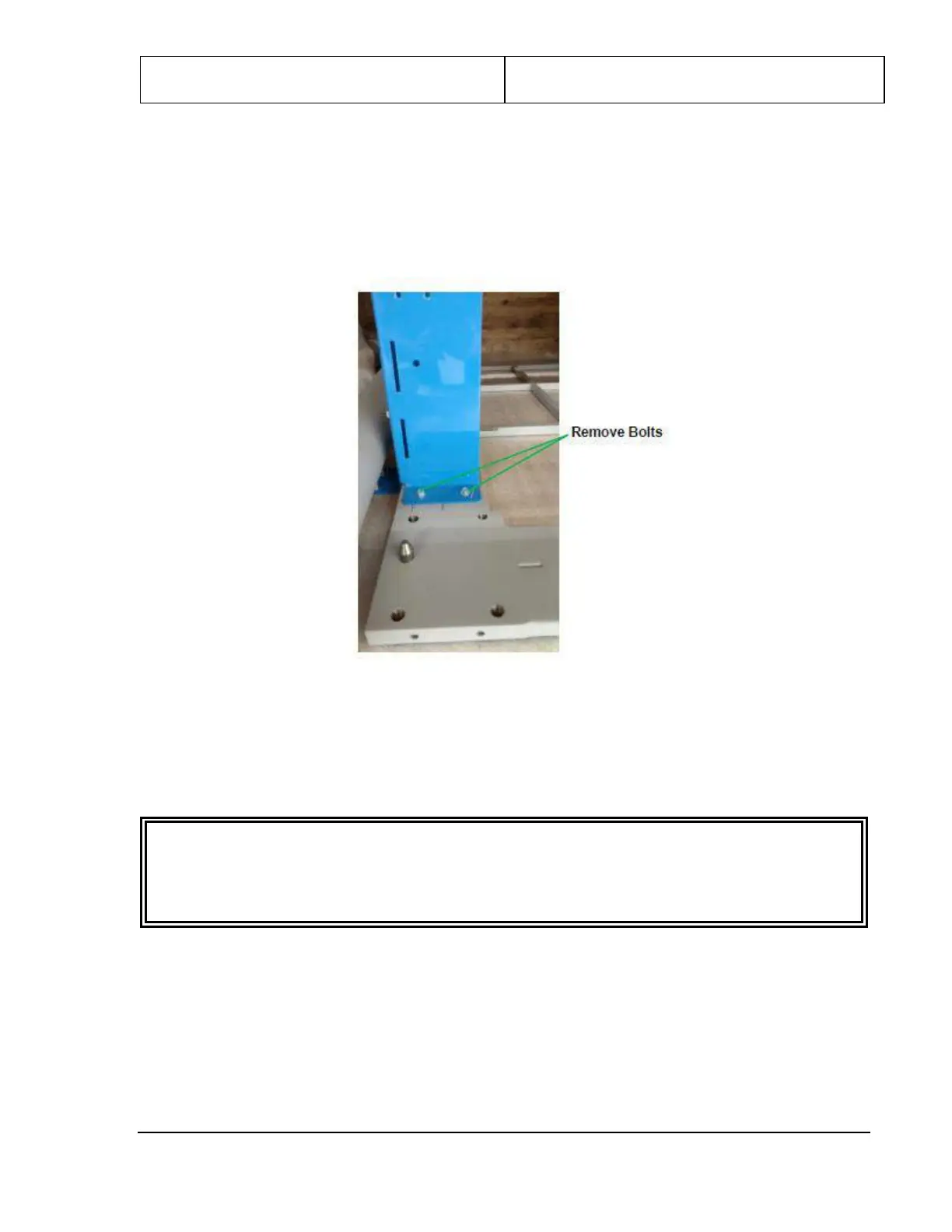 1. Remove the two “outer” bolts (nearest either end of the scanner) from each shipping leg, as shown in