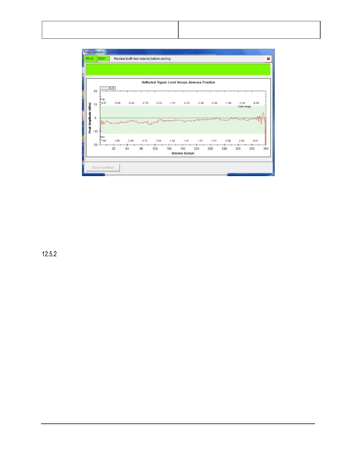 16. After review the test results click save baseline, this is only allowable after the test results have be