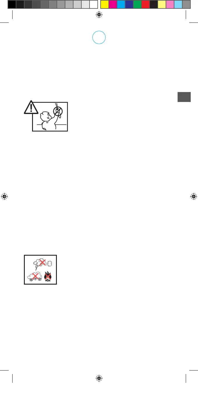 používajte iba mimo dosahu detí. Šnúry sa môžu omotať okolo