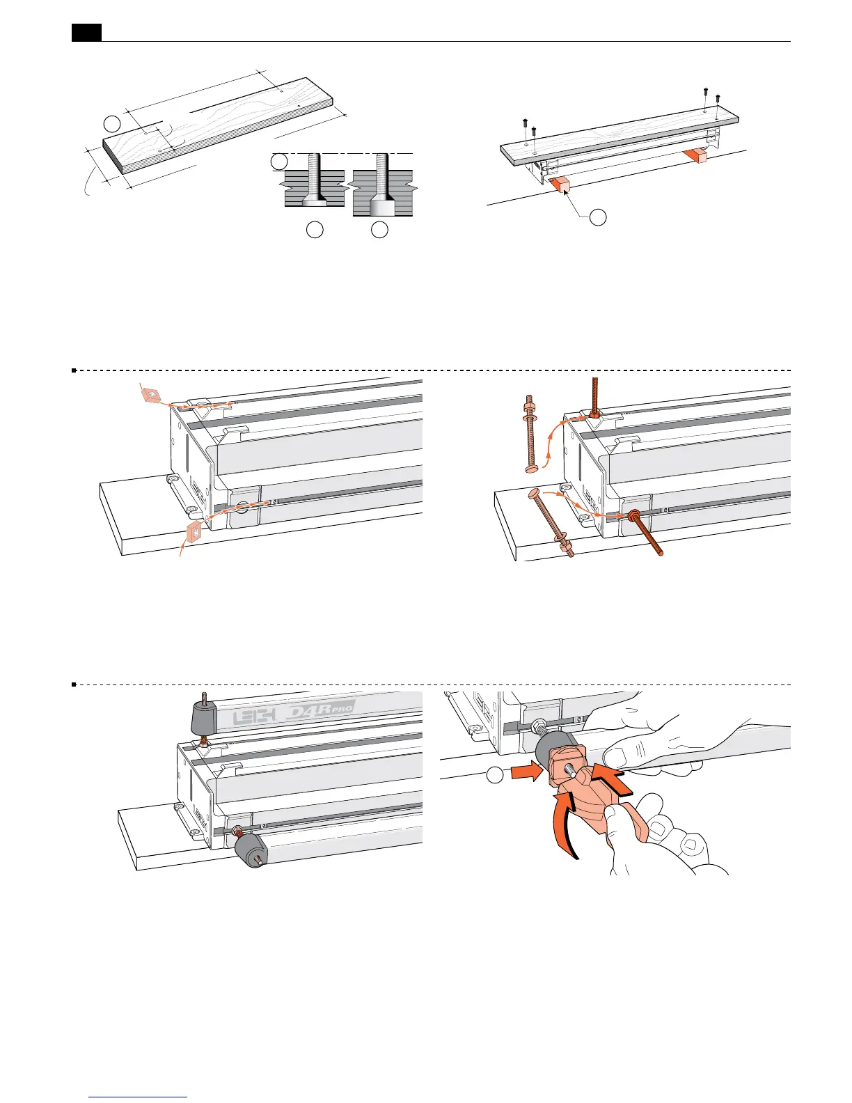 milled recesses. Tighten the four clamp bolt nuts with the Leigh