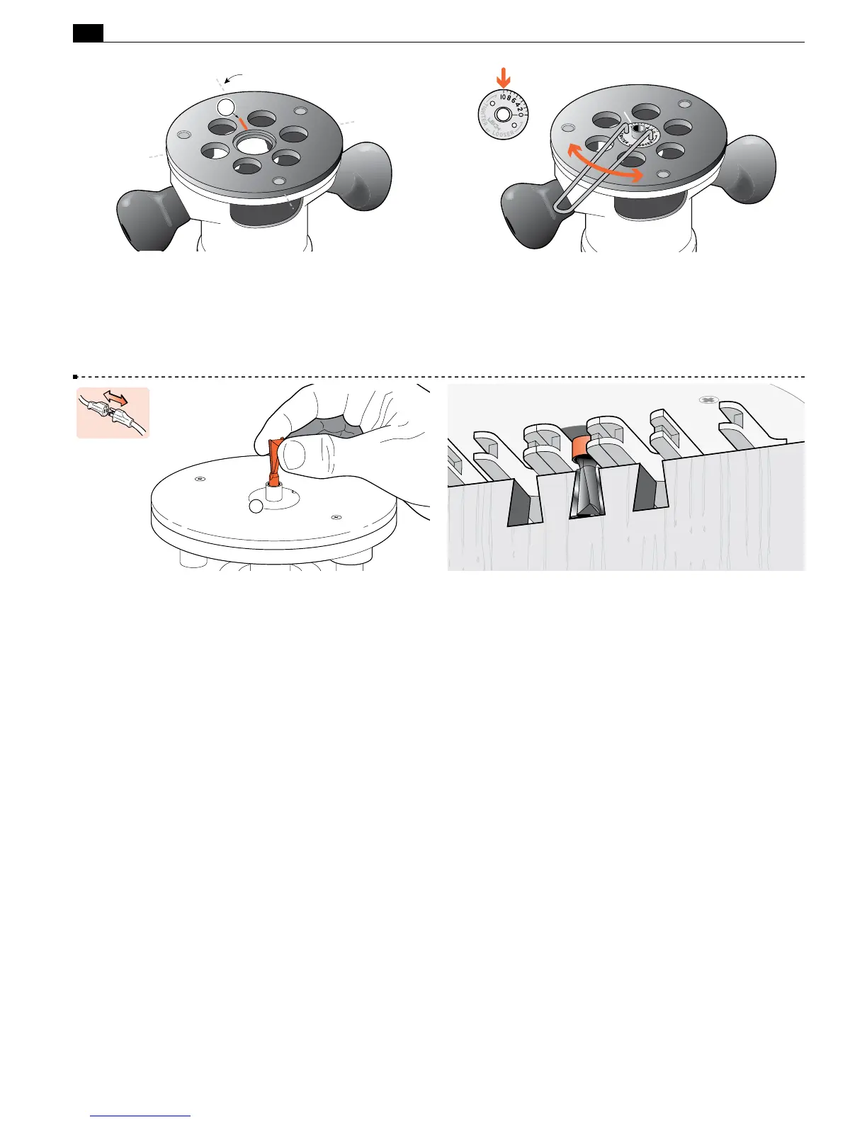 3-6 Fit the e7-Bush to the router and align No.10 to the scratch