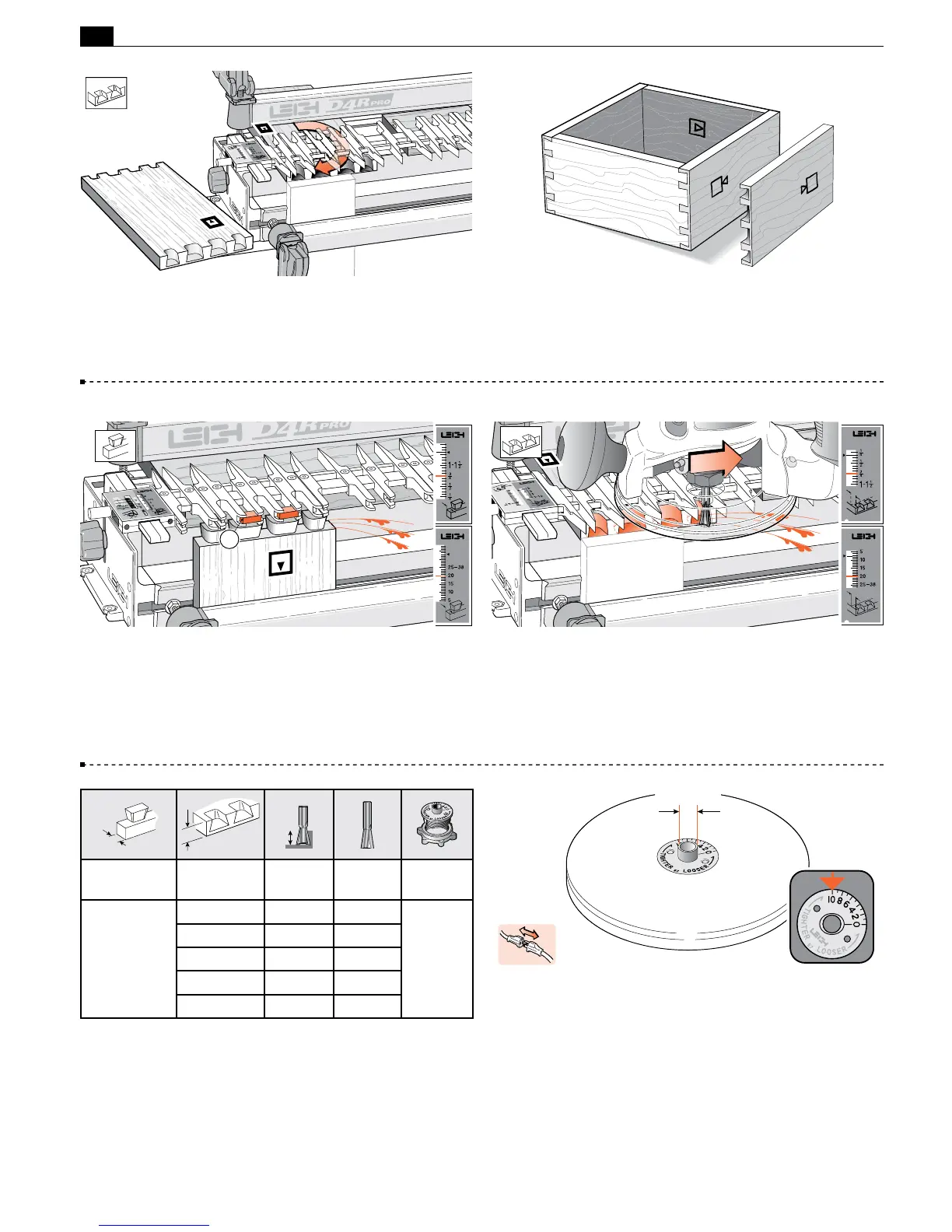 10-36 On the Leigh D4R Pro, all half-blind dovetails are routed