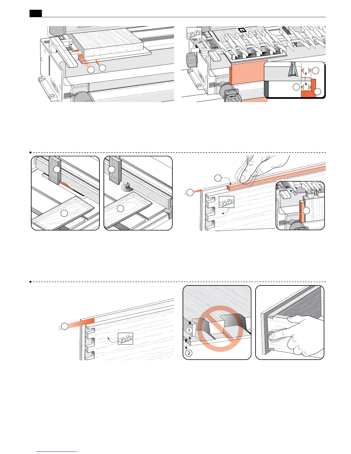 in the front of the jig out from the jig’s front face by exactly the depth