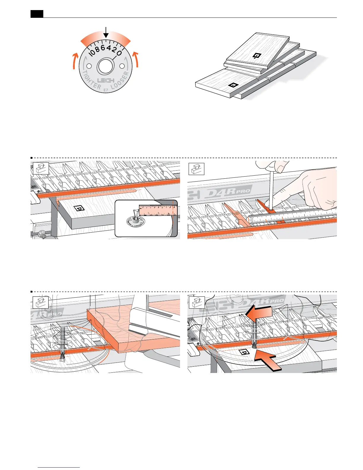 Each increment changes the glue line fit by 0.001”[0,025mm] When