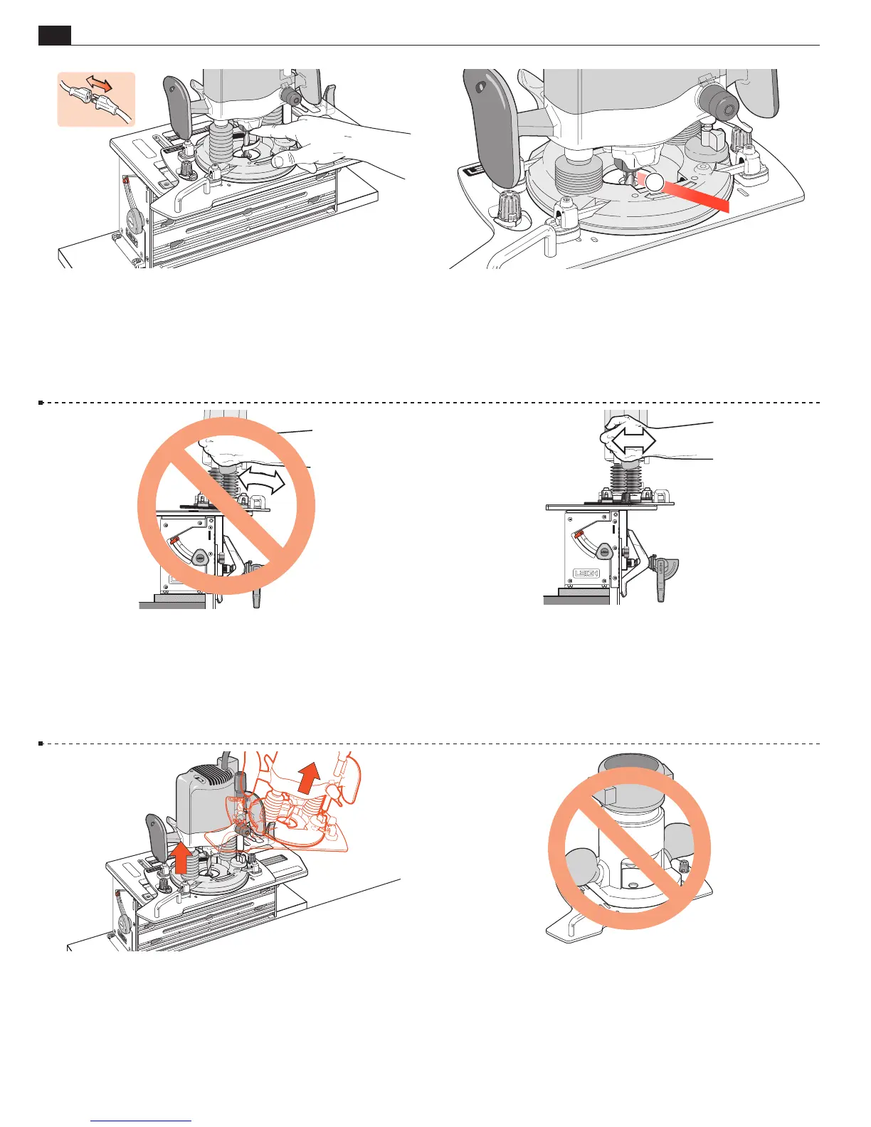 3-44 Always raise the plunge router mechanism before removing