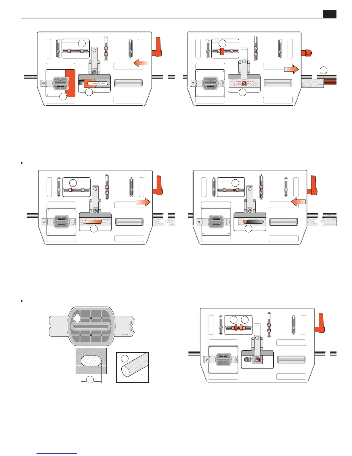 6-10 Mortises Release the table clamp. Use the small block