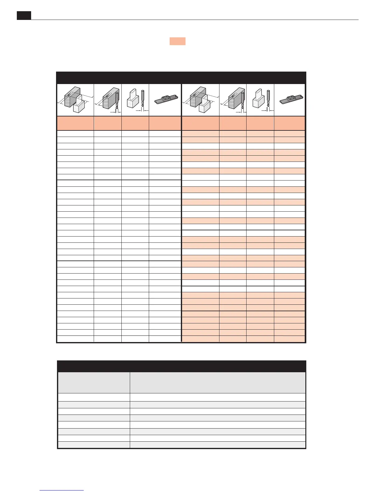 Directions: Joints routed with a single bit are shown shaded. In addition to the joint sizes listed in the charts, any tenon