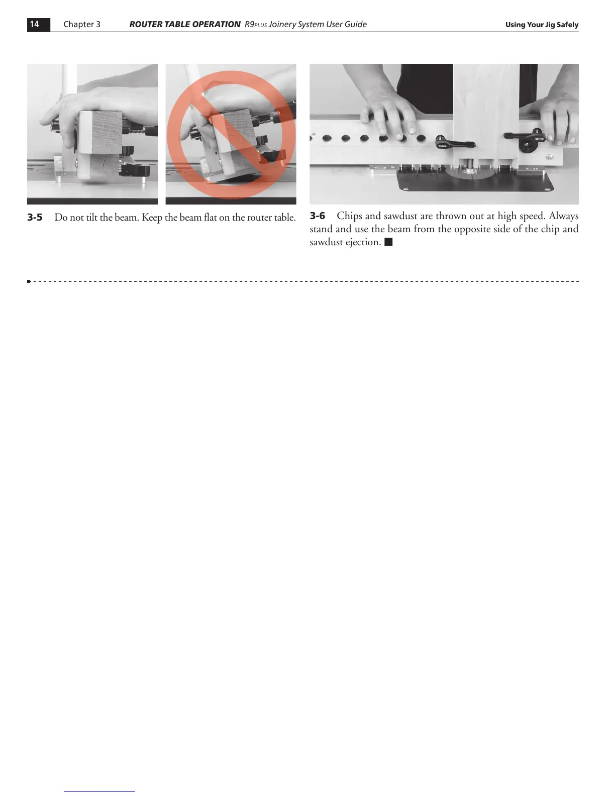 3-5 Do not tilt the beam. Keep the beam flat on the router table.