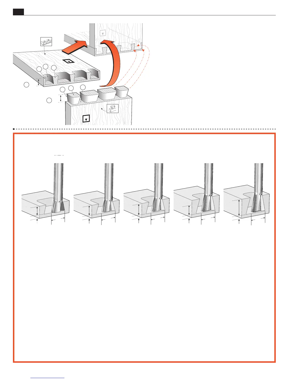 • A dovetail bit will produce only on