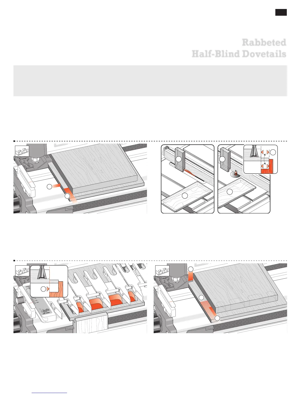 Note: Rabbeted half-blind dovetails cannot be routed in a single pass – the lip of a drawer front makes it impractical,