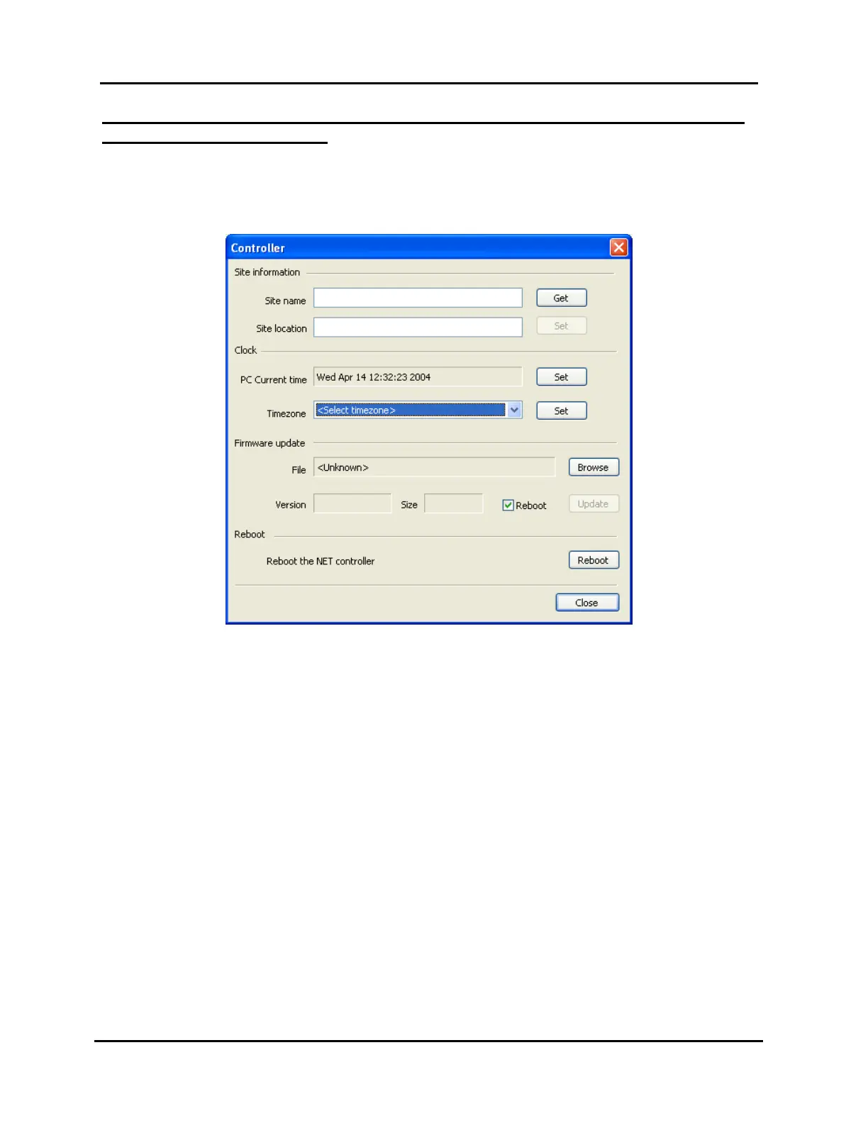 CONFIGURING SITE INFORMATION AND CLOCK, UPDATING FIRMWARE, AND