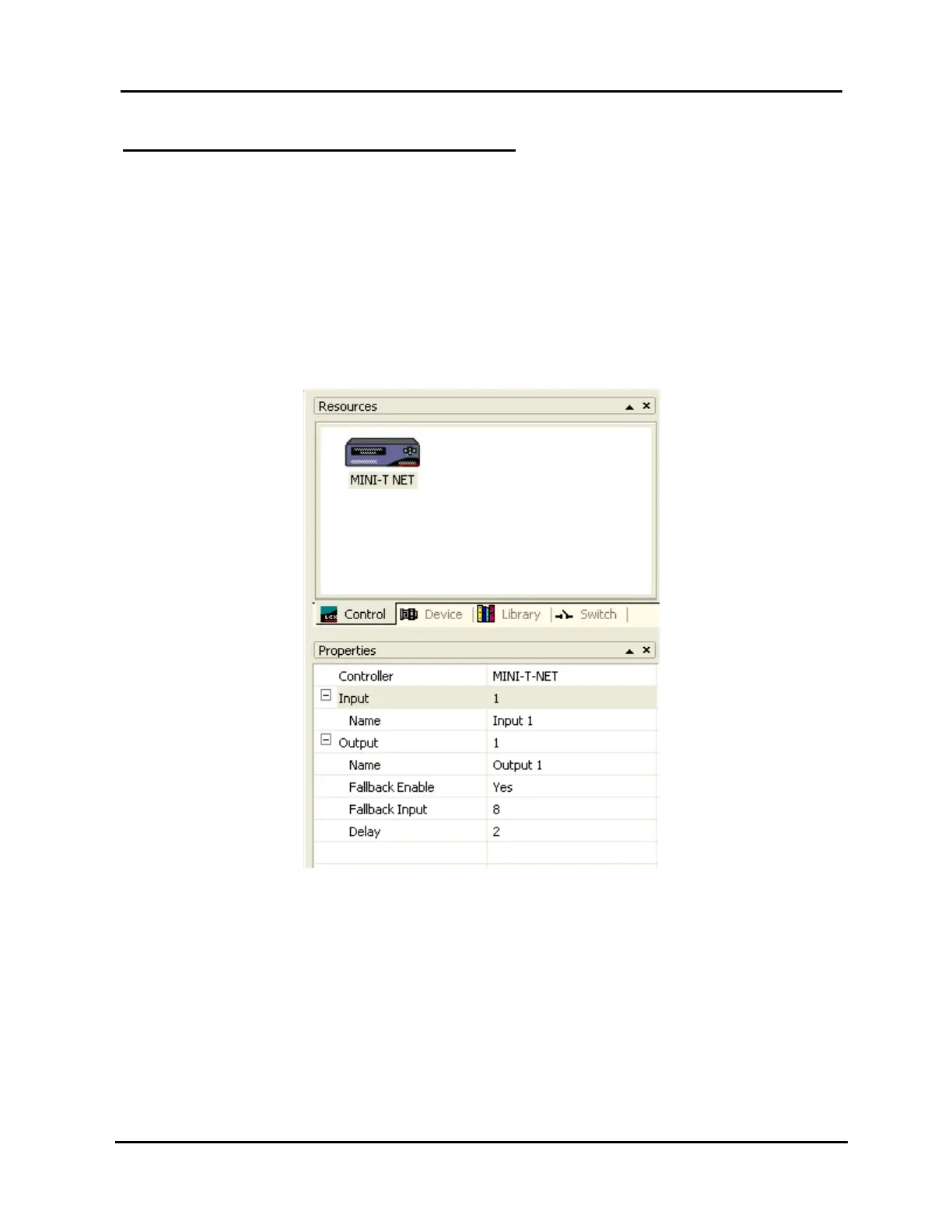 The MINI-T-NET’s control properties may be set as follows (refer to Illustration