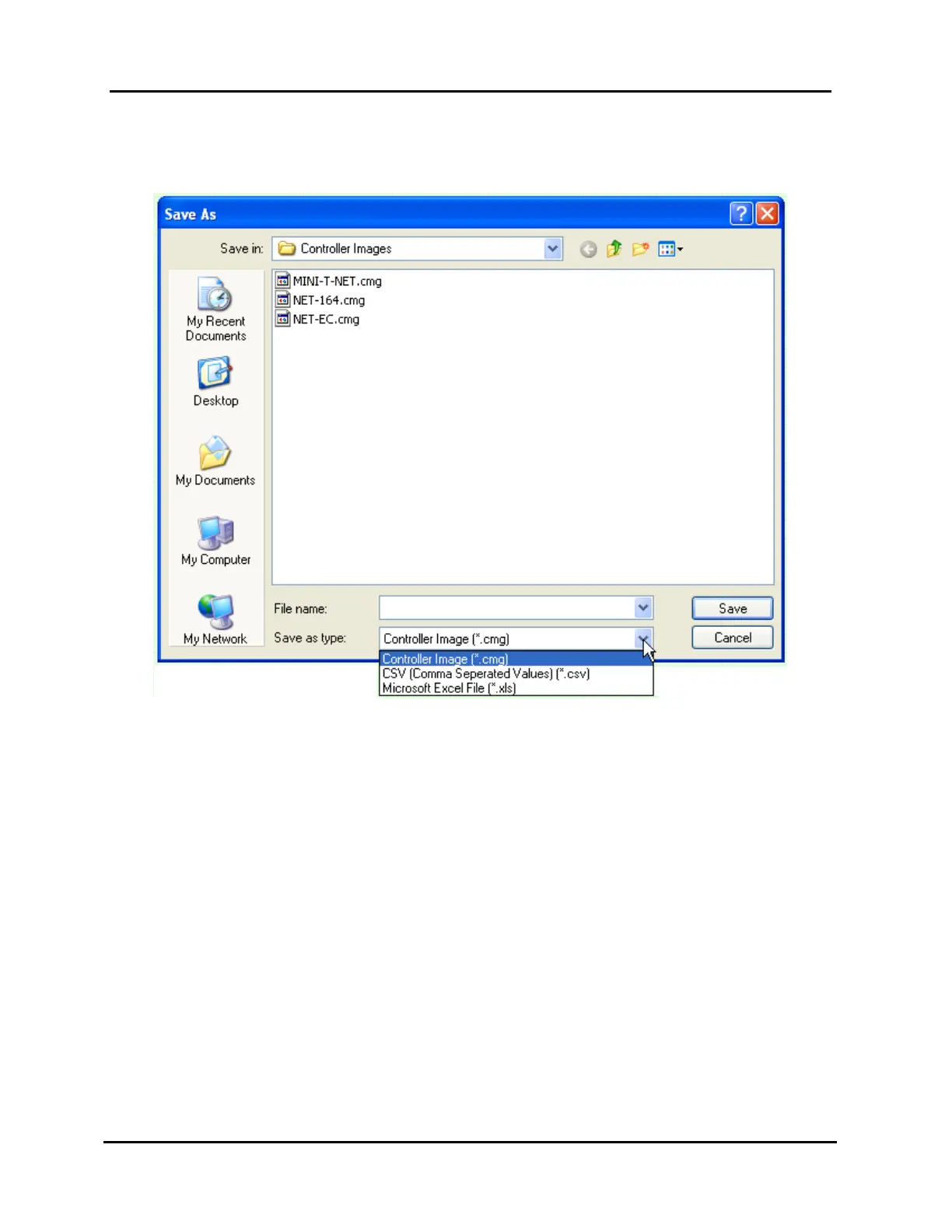 3. Ensure the “Controller Image (*.cmg)” option has been selected in the “Save as