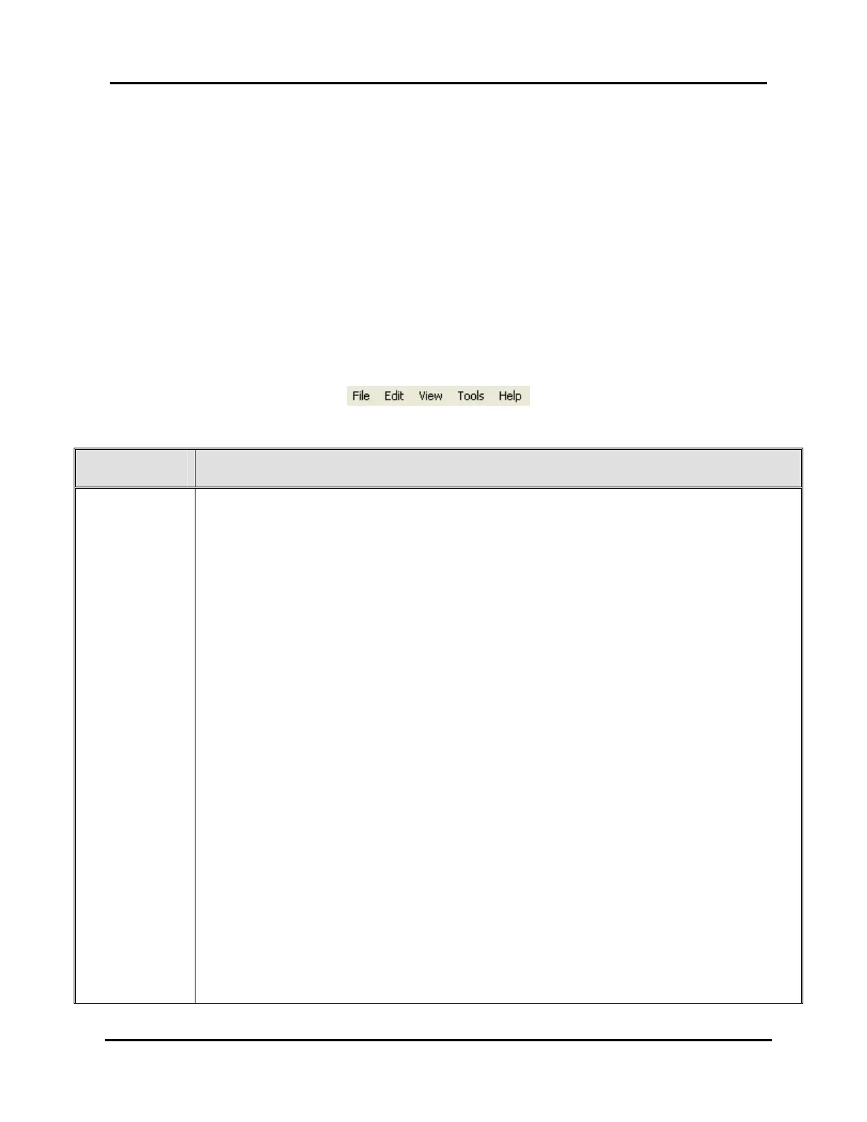 Table 11, Menu Bar Items