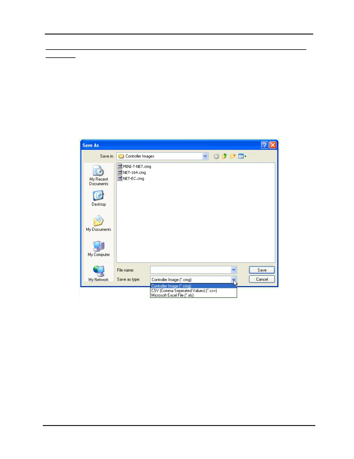a. Select a folder in the “Save in” field. The default is “Controller Images.”