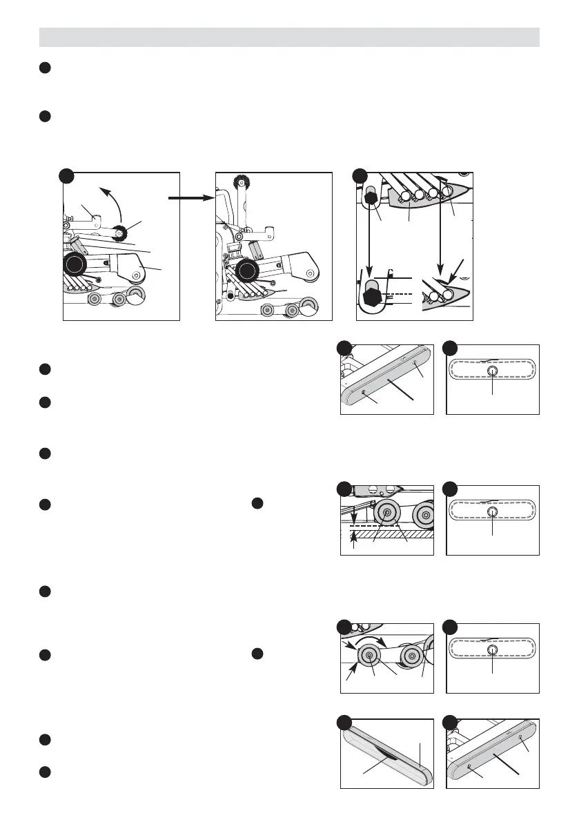 durch linkes Drehen die Führungsrolle vorne (18) einstellen. Distanz Boden zur Führungsrolle vorne (18)