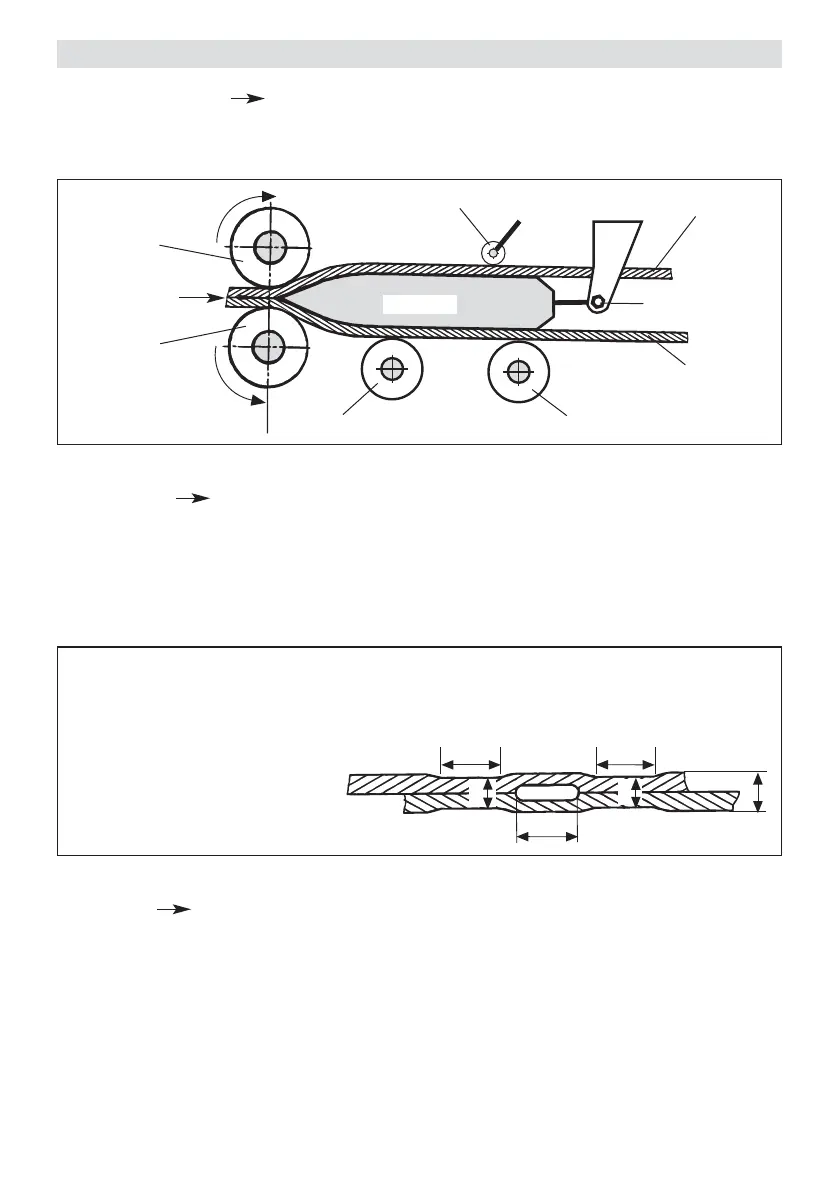 krollen. De pendelkop garandeert een gelijk matige aandrukkracht op de beide naden (C en D) en ook op een