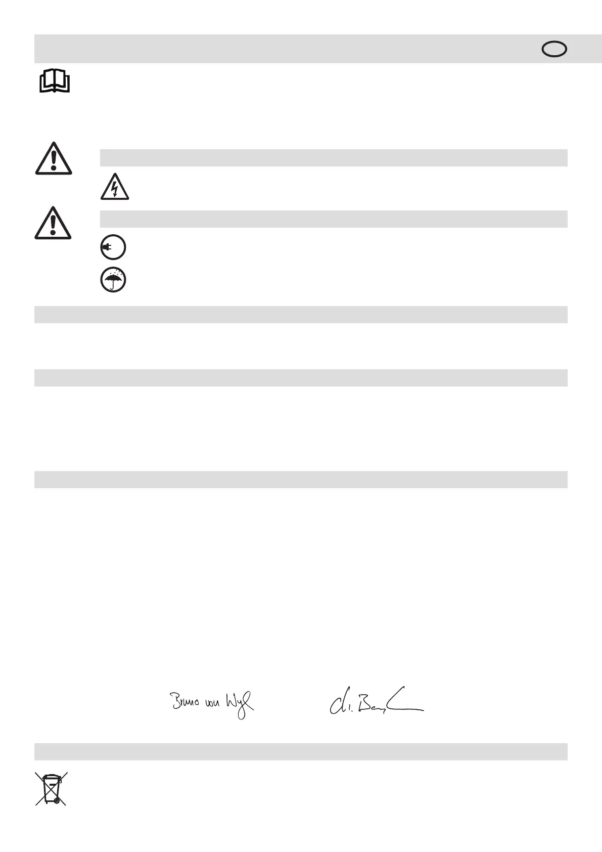 Electrical equipment, accessories and packaging should be recycled in an environmentally friendly way. For EU countries