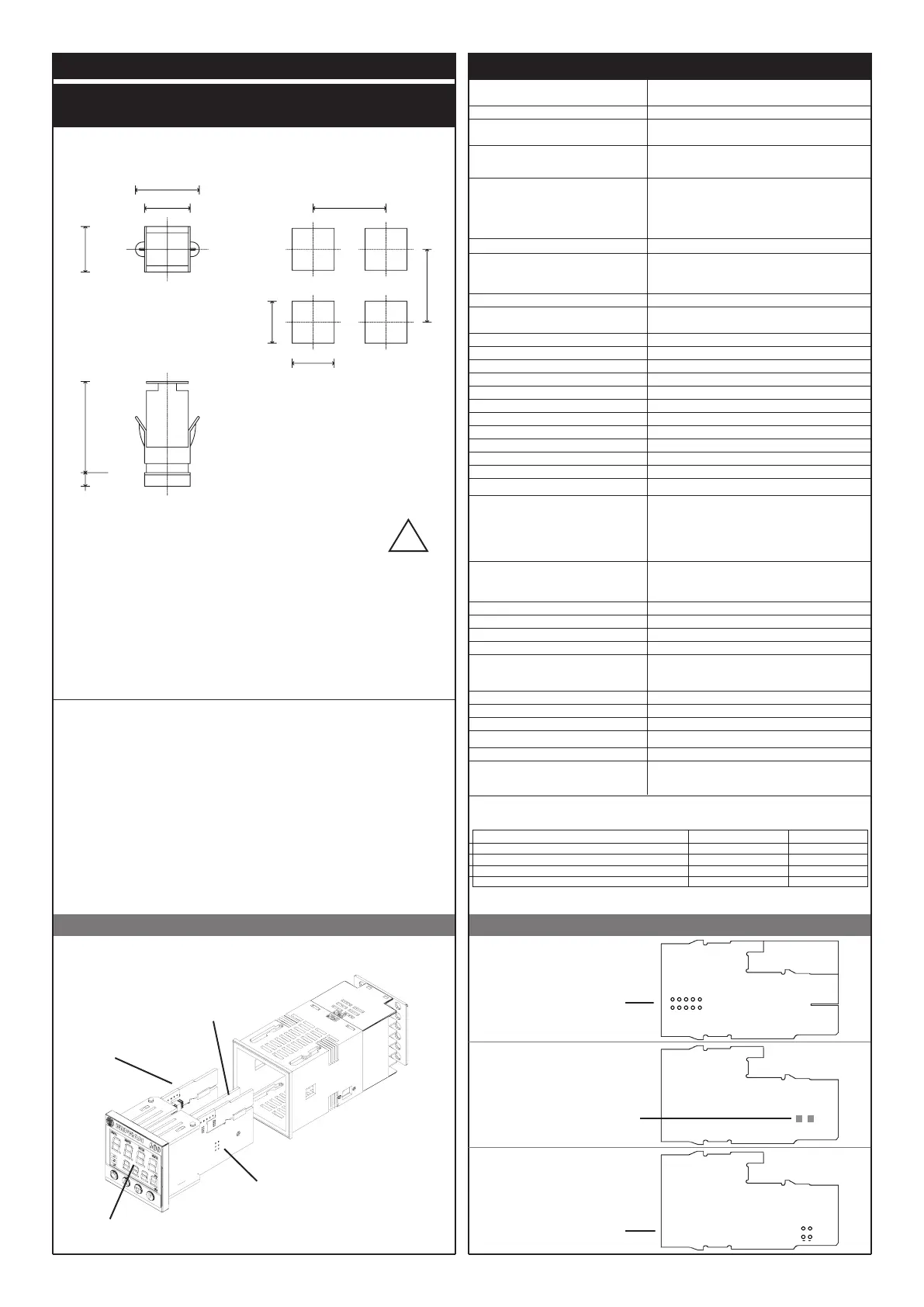 To mount two or more units side by side, respect the cut-out dimensions shown in the drawing.