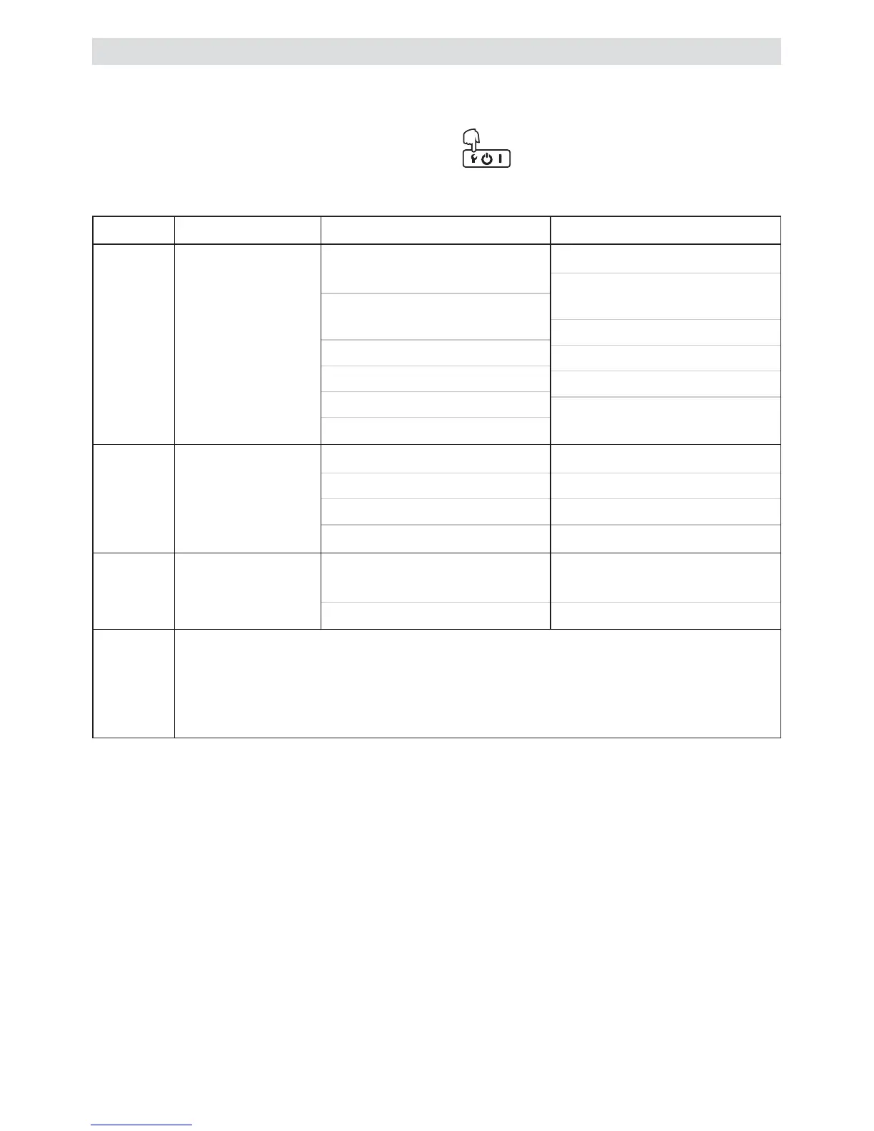 Designation Cause of error Troubleshooting
