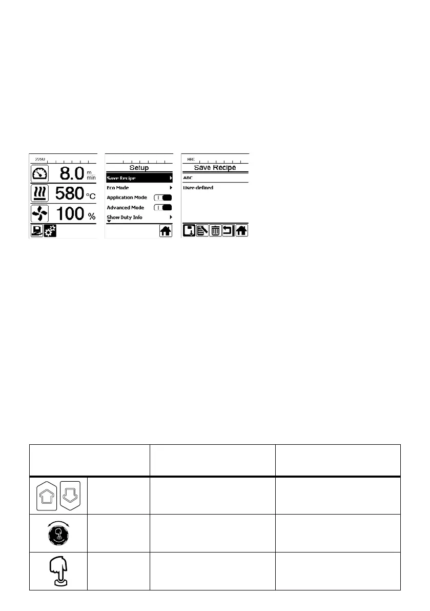 • If, during operation you change setpoints in the recipe you created, the setpoints will not be saved in the