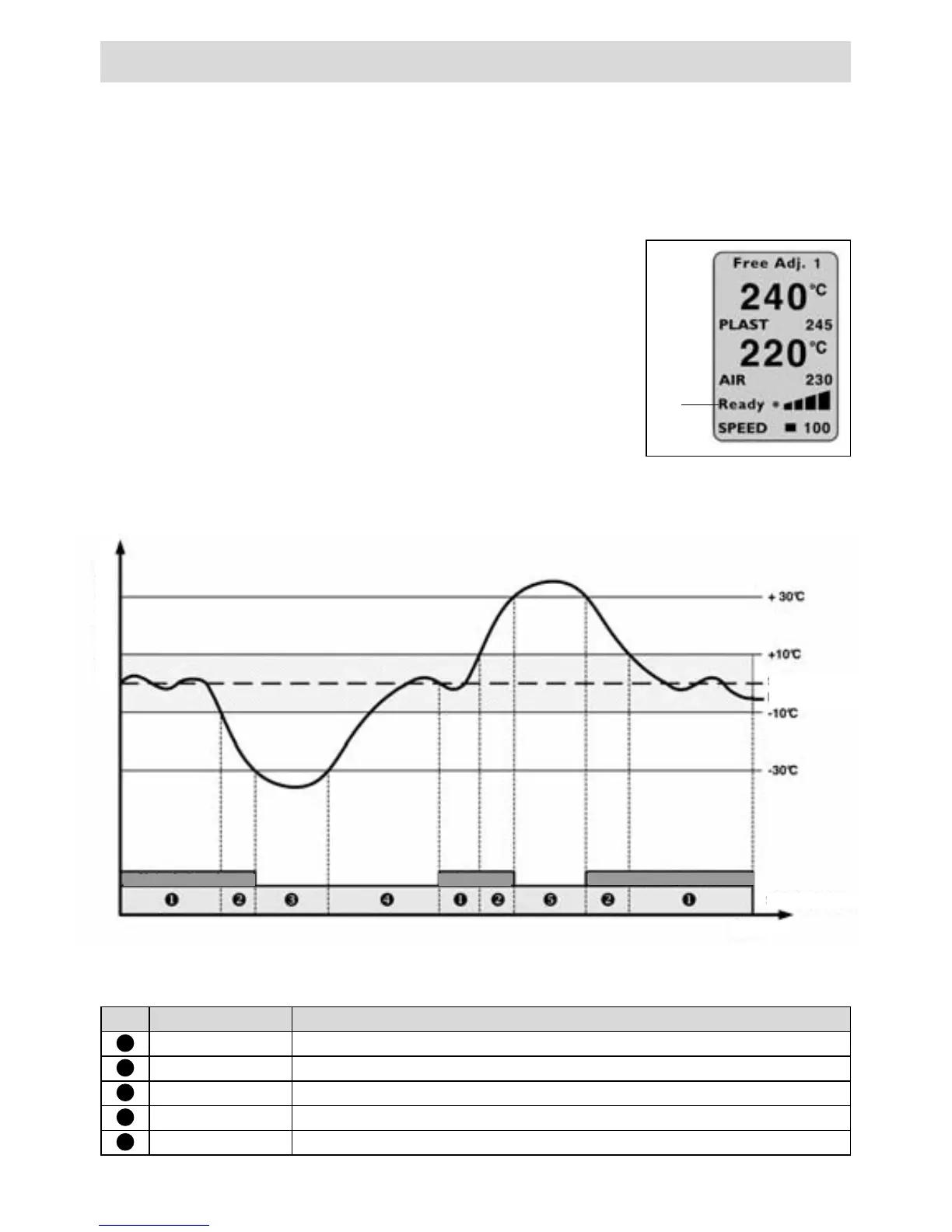 • Set the cursor to the «PLAST» or «AIR» position by pressing the Select key (28).