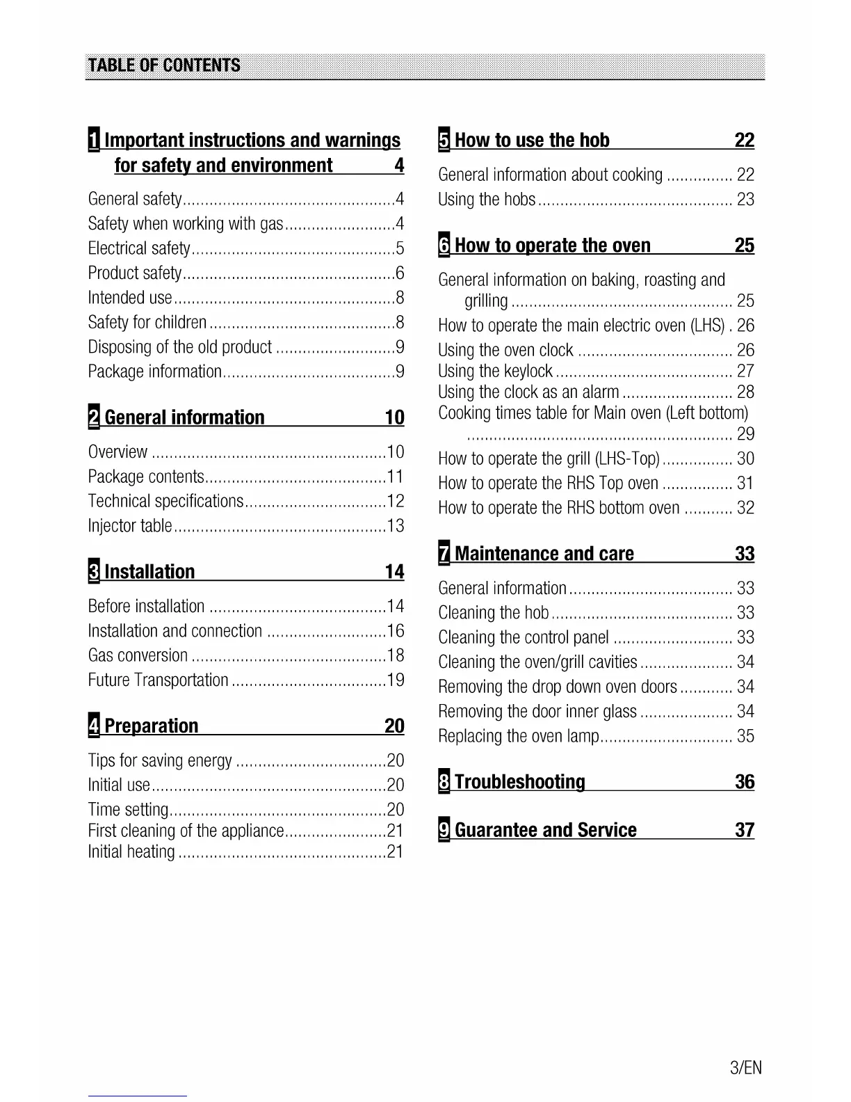 Leisure CuisineMaster CS100F520 - Table of Contents