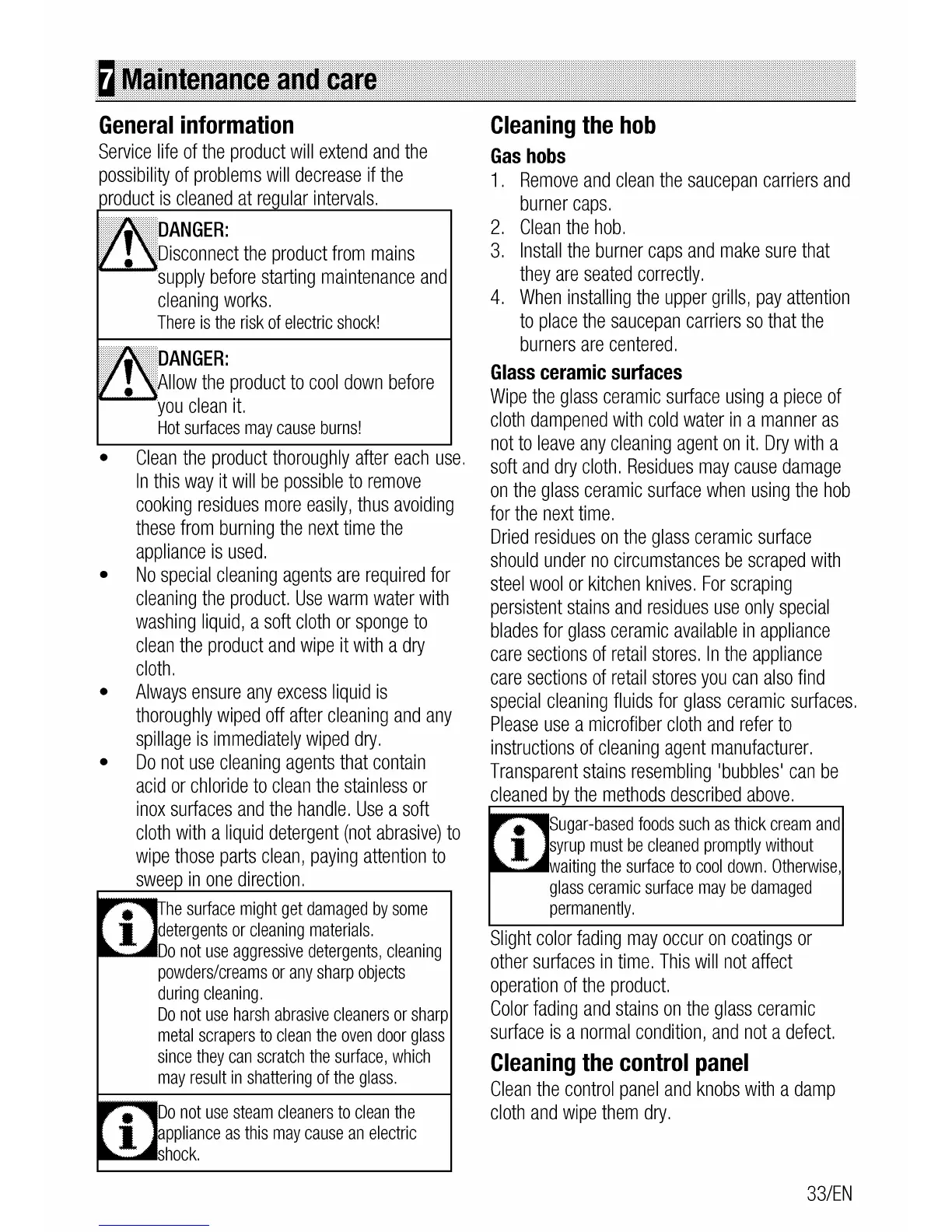Leisure CuisineMaster CS100F520 - Maintenance and Care