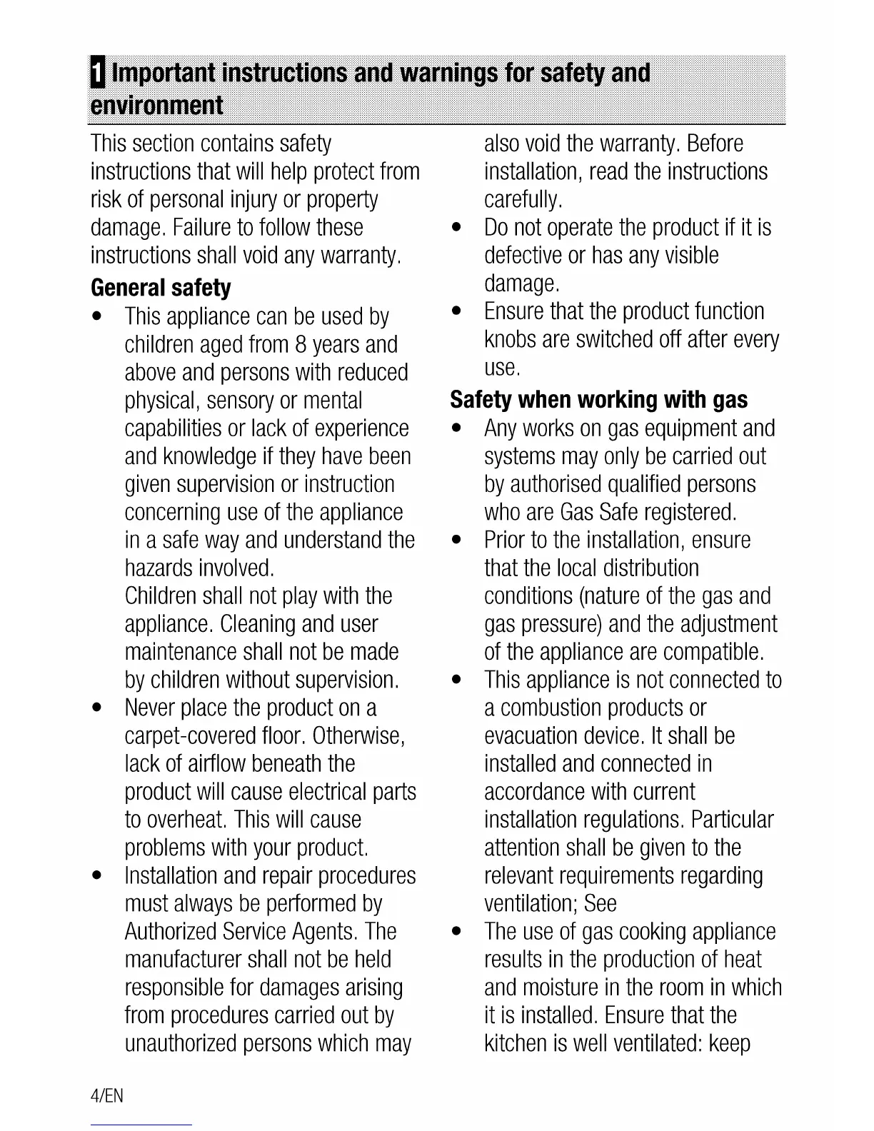 Leisure CuisineMaster CS100F520 - Important Instructions and Warnings for Safety and Environment; General Safety, Gas and Electrical Precautions