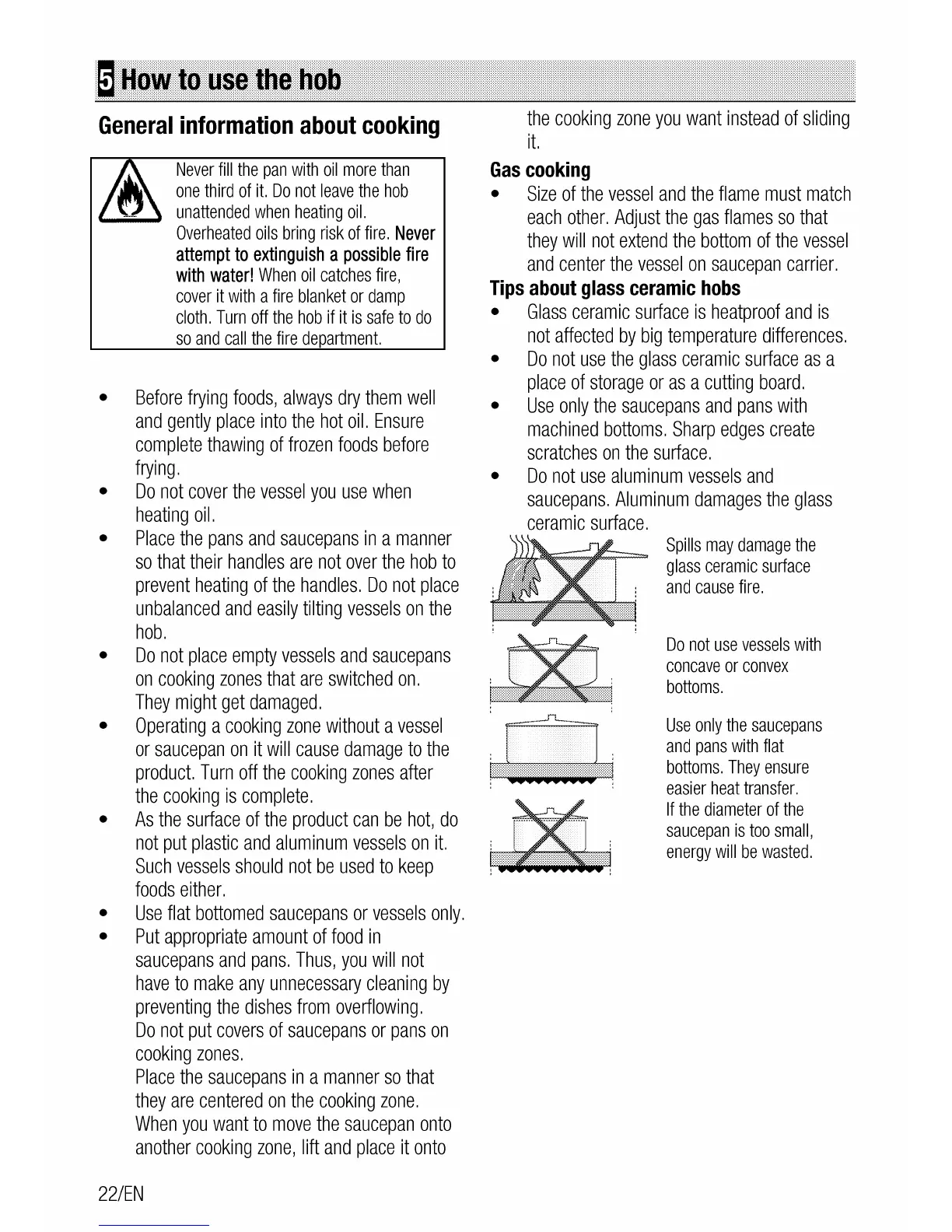 Leisure CuisineMaster CS110F722 - How to Use the Hob; General Information about Cooking; Gas Cooking; Tips about Glass Ceramic Hobs