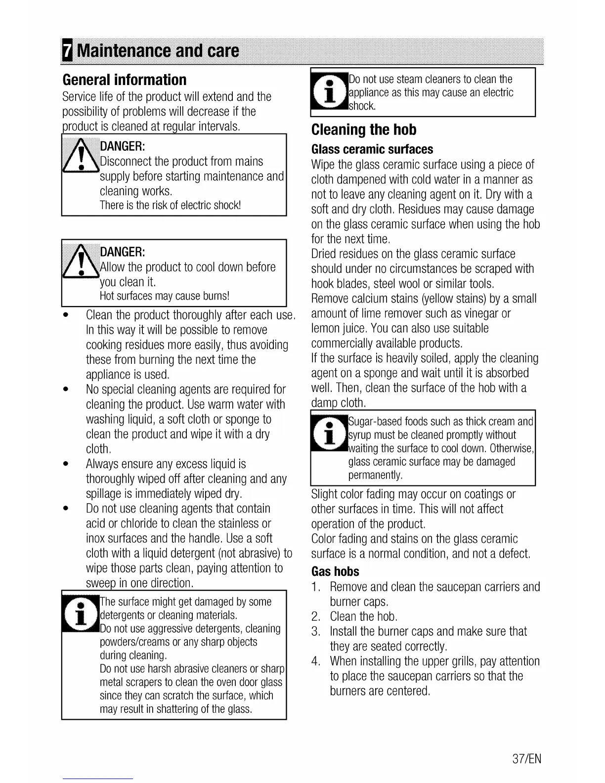 Leisure CuisineMaster CS110F722 - Maintenance and Care; General Information; Cleaning the Hob