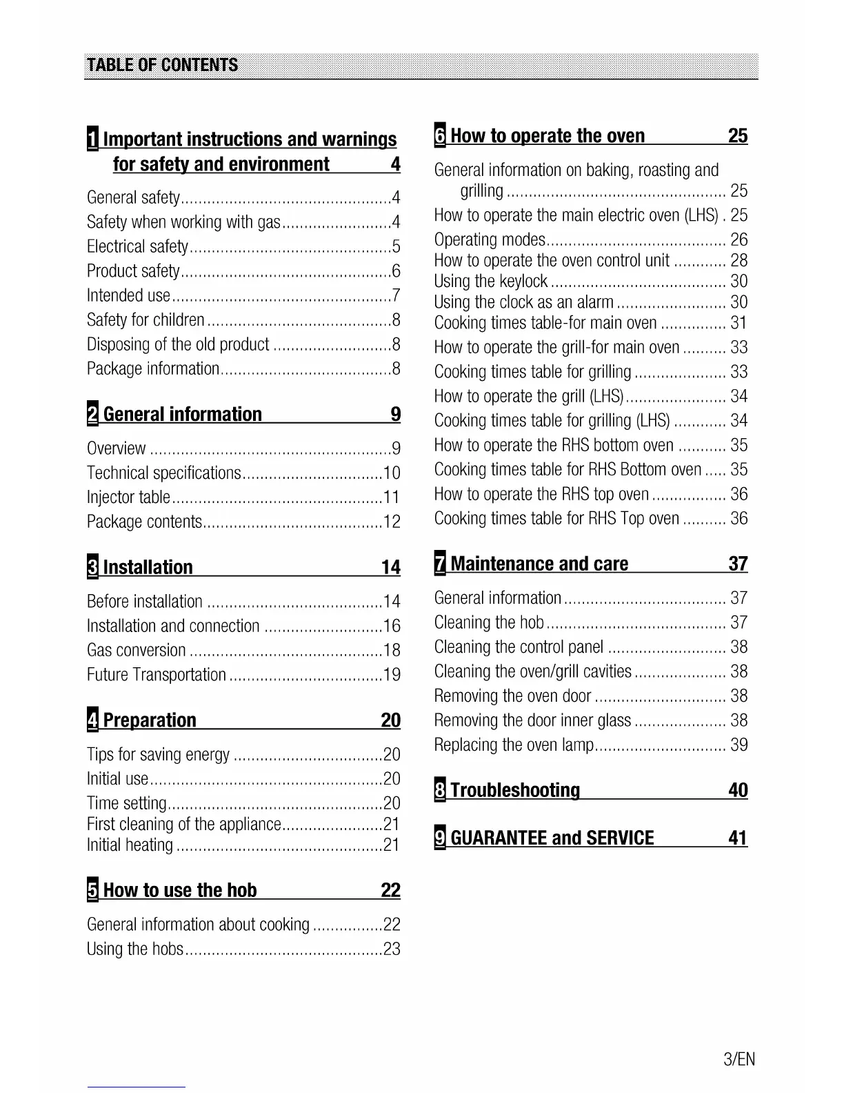 Leisure CuisineMaster CS110F722 - Table of Contents