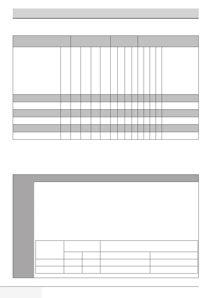 capacity, drying sequence and load content are described in the following table.