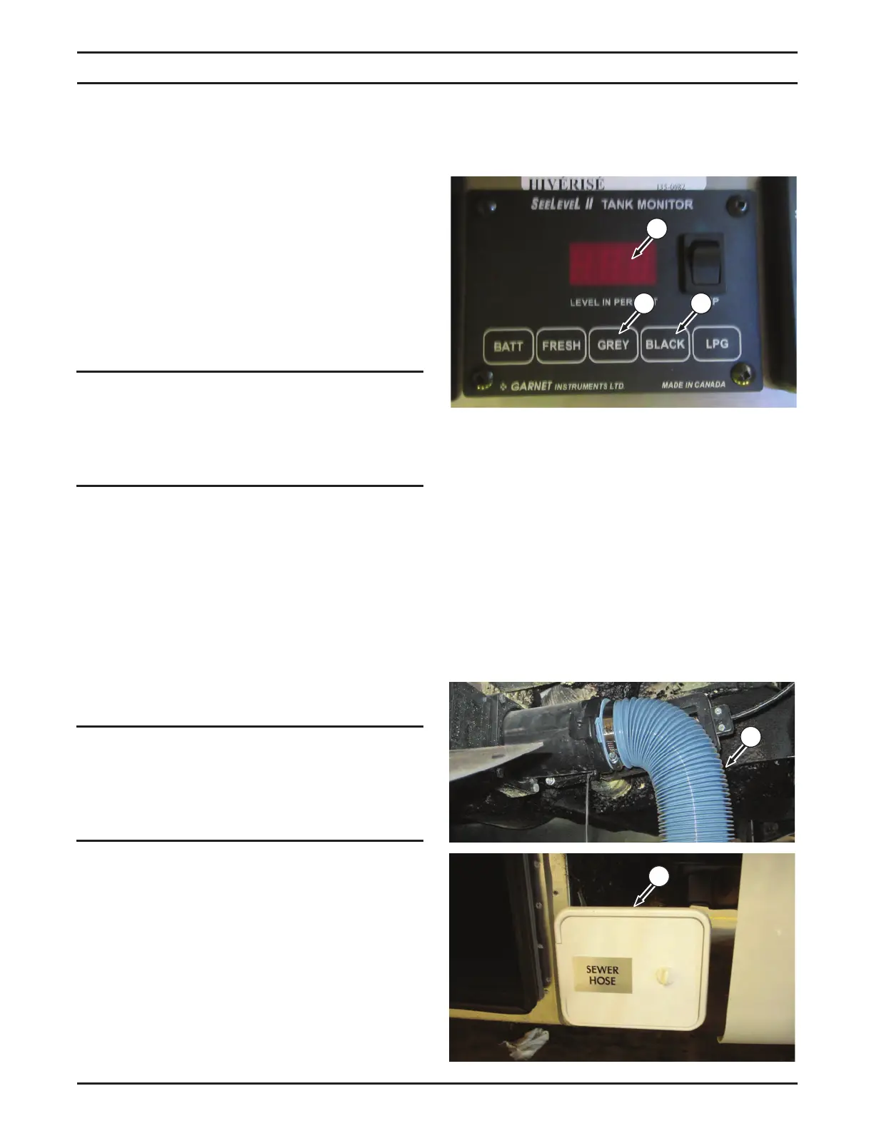 1. Connect the sewer hose (4) to the tank outlet
