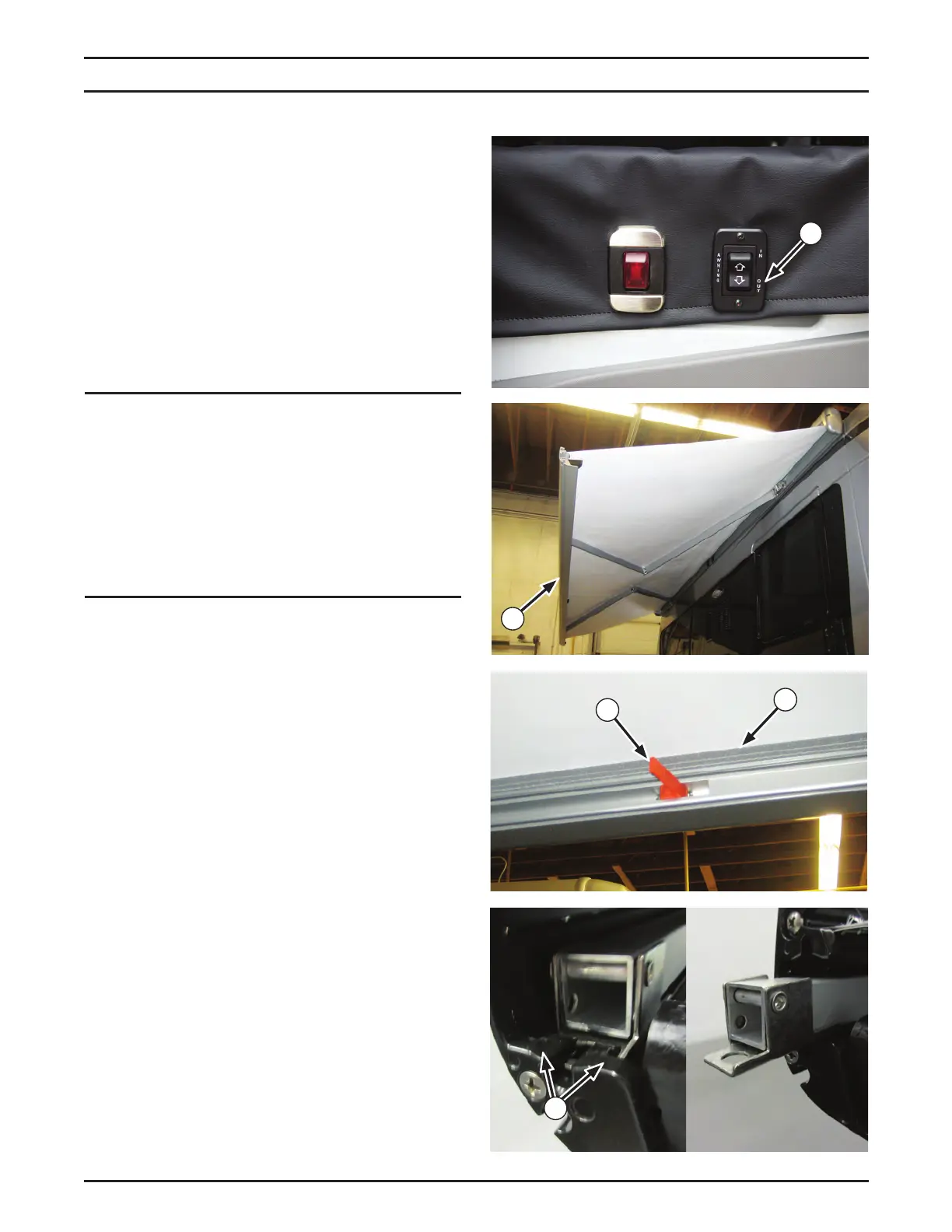 1. Depress and hold the awning switch (1),