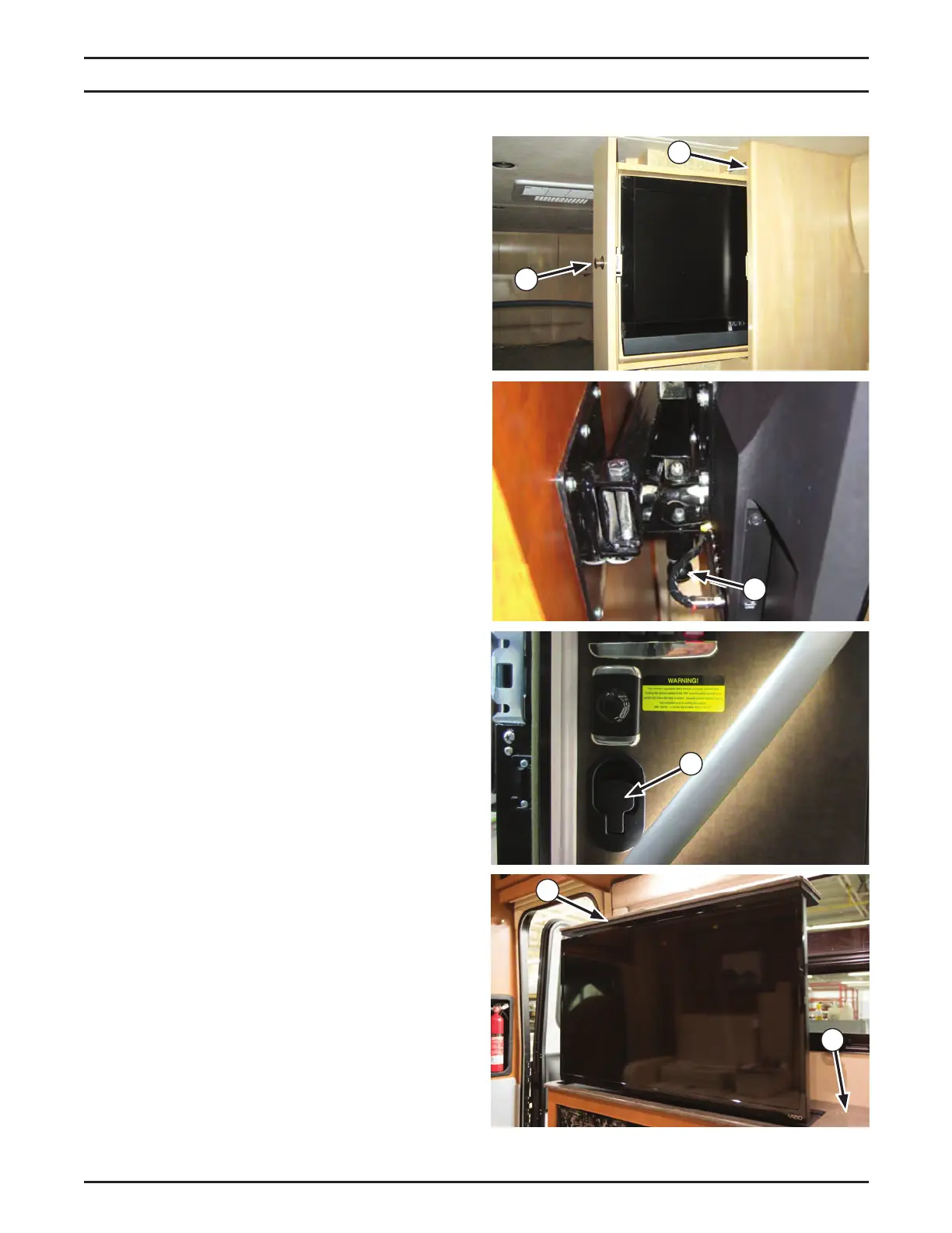 The TV is stowed in the coach dividing wall (1),