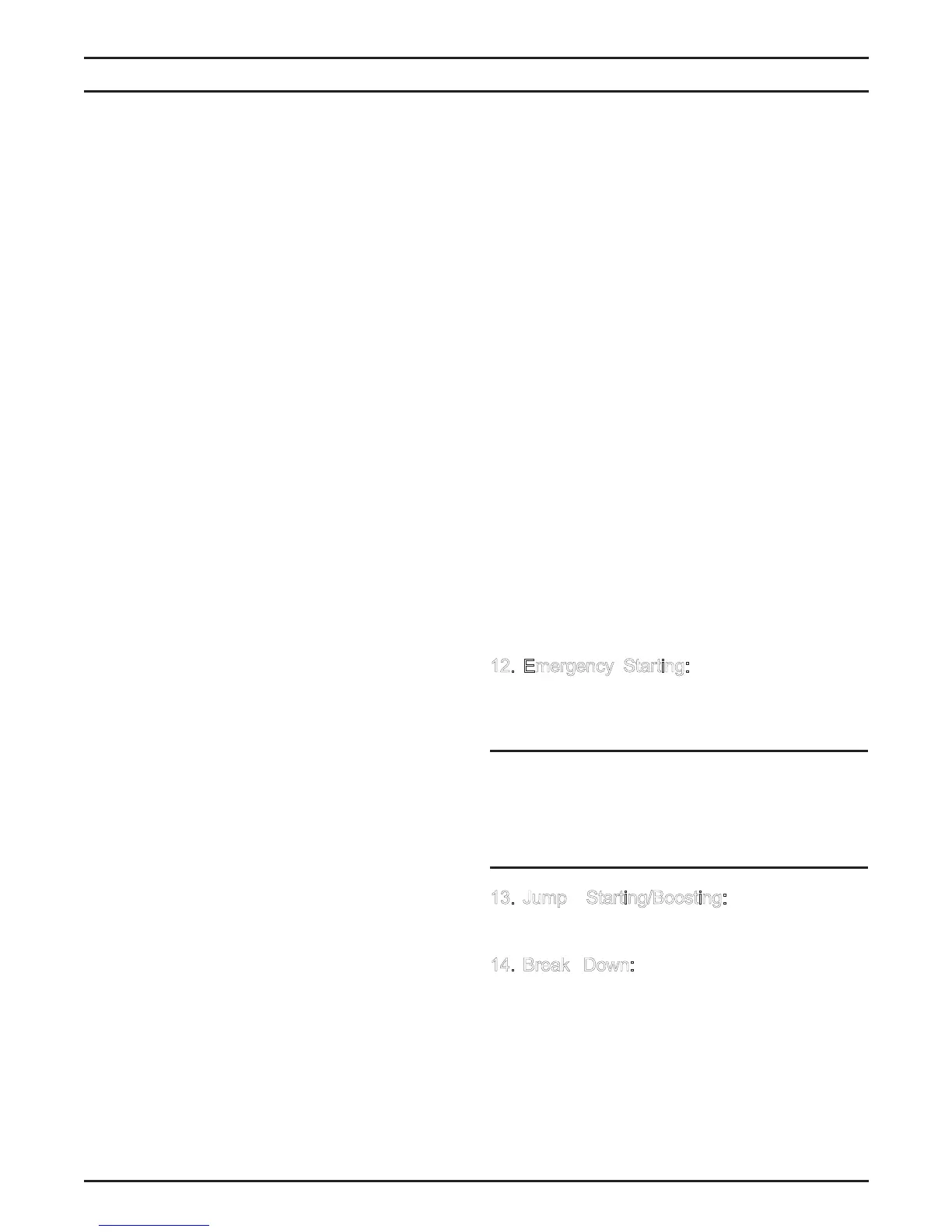 12 Emergency Starting: Do not push or tow
