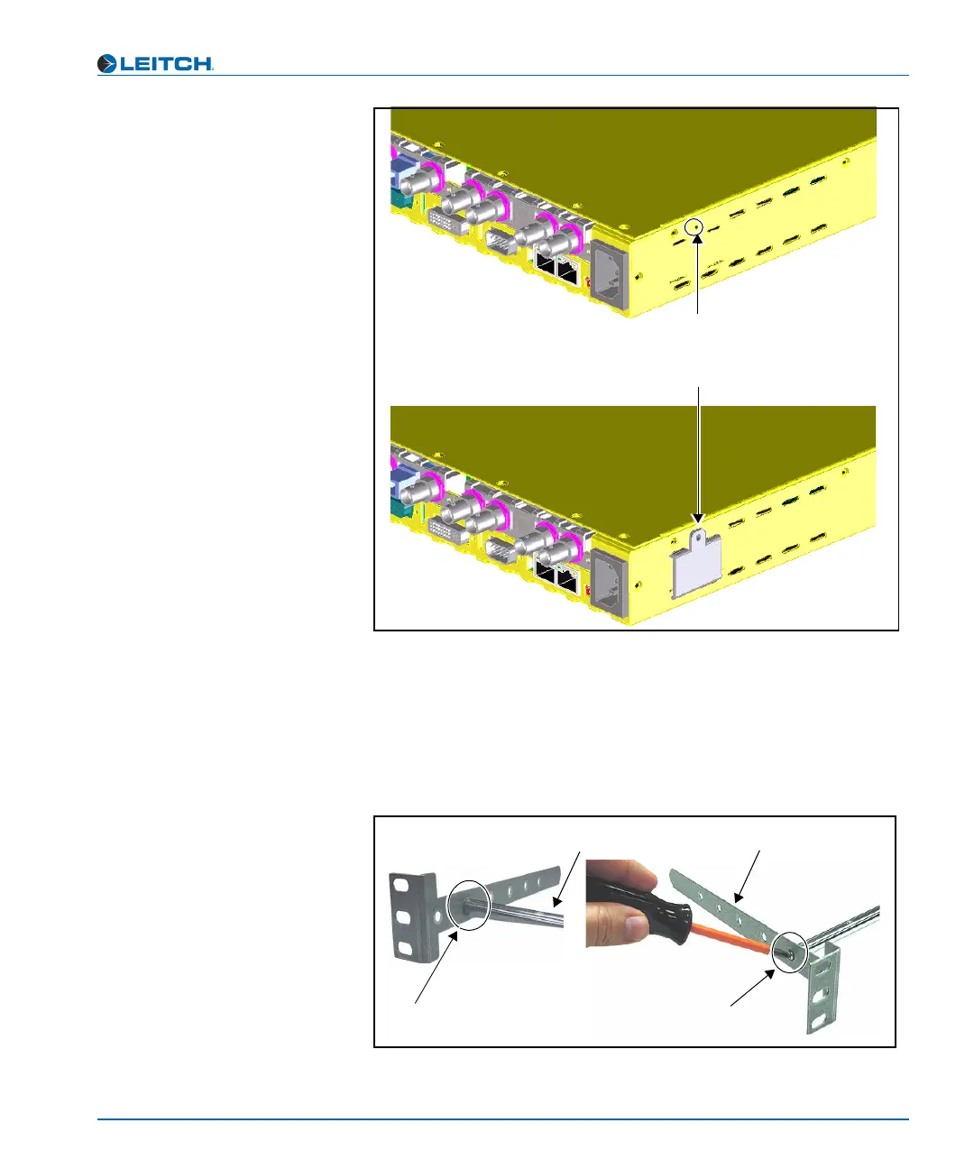 3. Attach the cable relief bar between the long rack support brackets