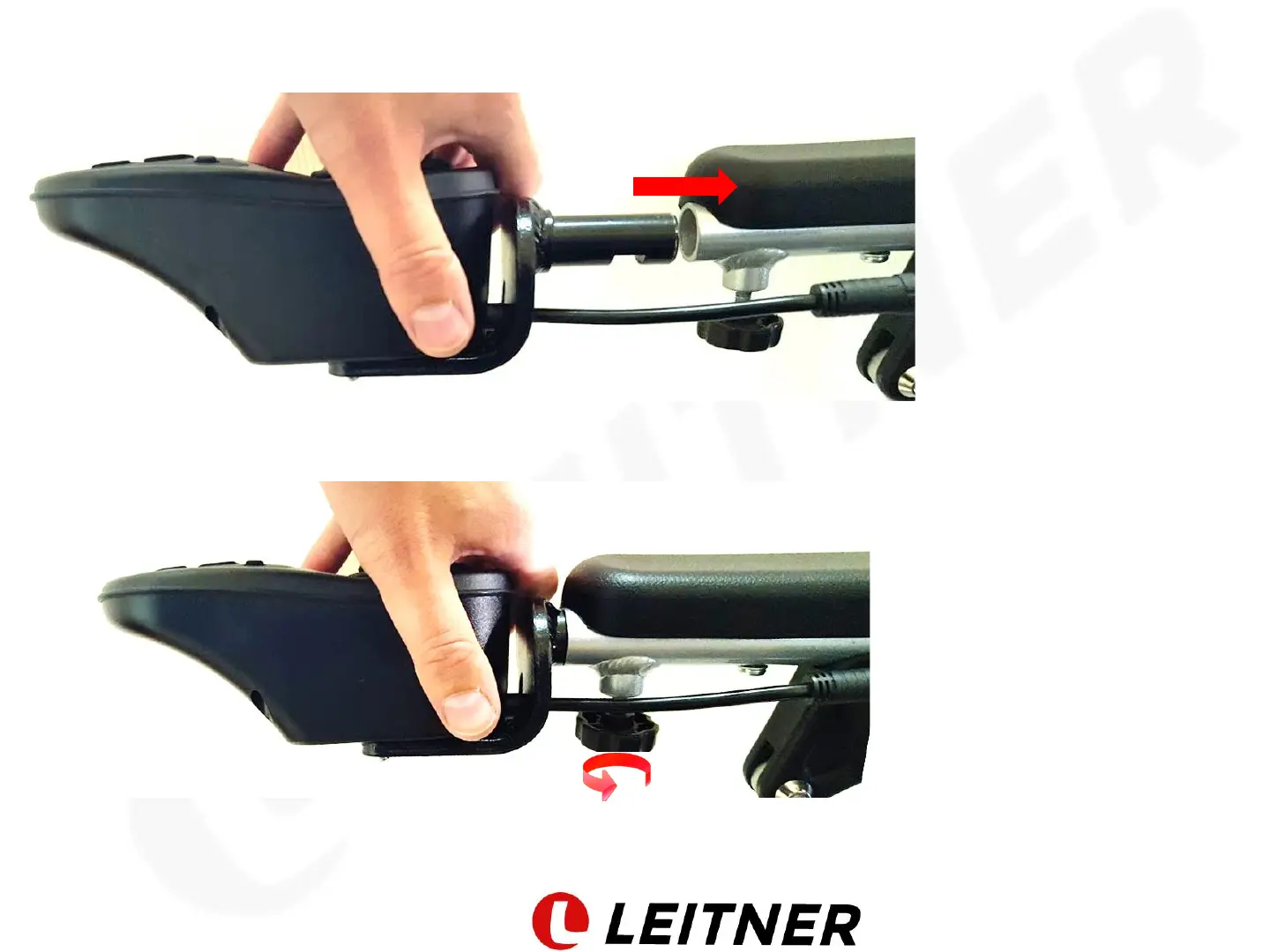 the picture above and insert it into the armrest tube (direction of red arrow).