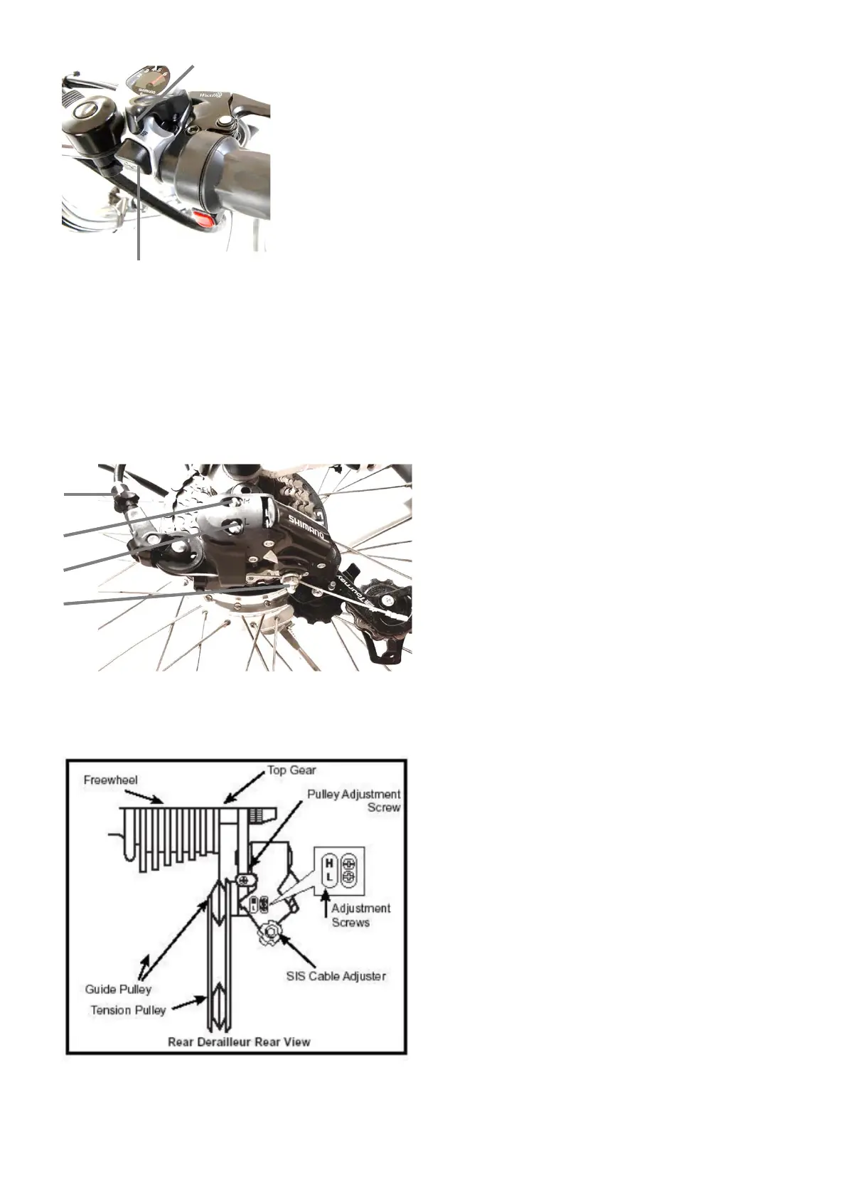 • Operating the gear shifter will move the chain to different cogs. The gear