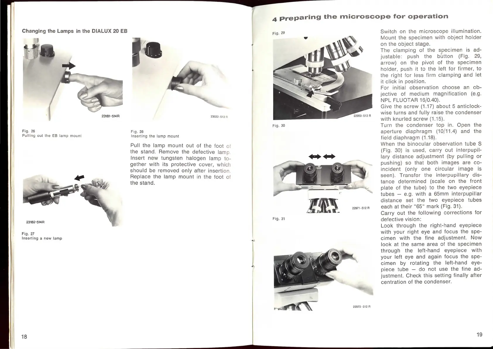 LEITZ DIALUX 20 - Preparing the Microscope for Operation; Changing the Lamps in the DIALUX 20 EB